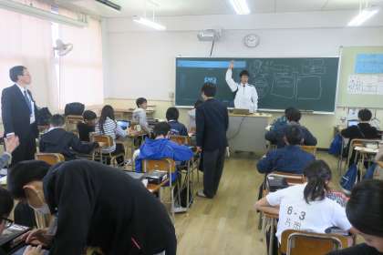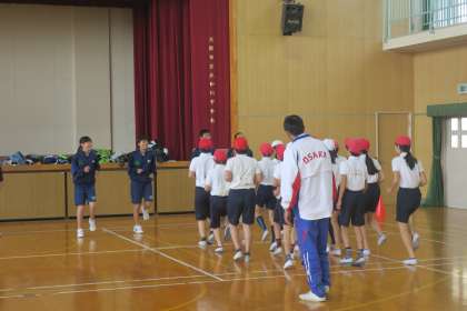 小学生が大和川中学校に来て、授業体験と部活動体験を行いました。