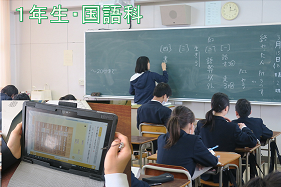 1年生の国語科では、タブレットを使って文法の学習をしていました。