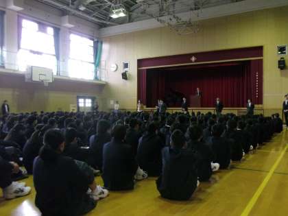 4月10日(月)に始業式がありました。新学年、新クラスとなり、新たな気持ちで学校生活に臨みましょう。また、この日は対面式もありました。一日一日を大切に充実した毎日を送れるよう努めましょう!!