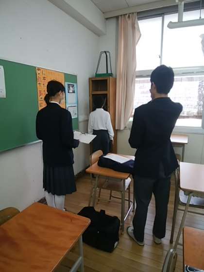 今年度から全員清掃になり、清掃場所が増え、点検も大変になりましたが、皆が綺麗に清掃できるように美化委員が率先して動いていきましょう。