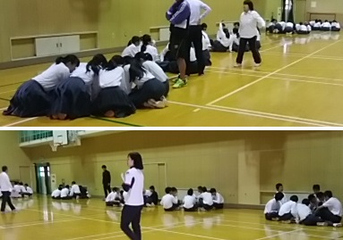 体育館では自分たちの部屋に分かれて、室長、食事、入浴、シーツ係を決めて、仕事の説明がありました。