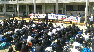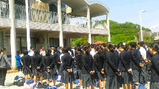 壱岐に到着しました!入島式で校歌を歌い全体写真を撮りました。これから、博物館、猿岩に行ってきます!