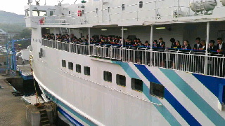 離島式の後、フェリーに乗りテープ投げをして、壱岐を離れました。壱岐でお世話になった皆様、ありがとうございました!