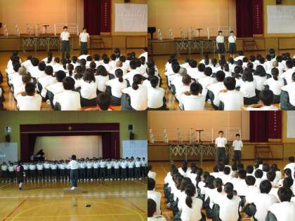 7月5日(水)に行われる合唱コンクールに向けて、リハーサルと課題曲の練習を行いました。どのクラスも本番に向けて一生懸命頑張っていました。練習の成果が十分に発揮できるよう、いい所は伸ばし、課題は克服し、悔いのない合唱を披露しましょう!美しい歌声を響かせましょう!!