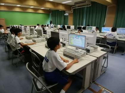 AEDの実技を行ったり、パソコンを使って救命救急の仕方を学んでいました。