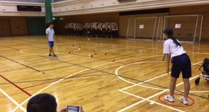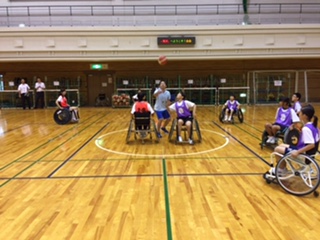 障がい者スポーツについて講演を聞き、実際に車いすバスケットやボッチャの体験をしました。