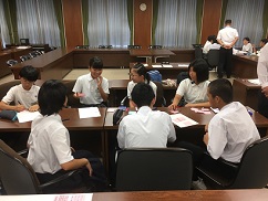 それぞれの委員会に別れて、大阪市の環境に関する取り組みや、障がい者スポーツに関することなど8月10日の本番で何を市長に質問するのかを話し合いました。
