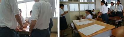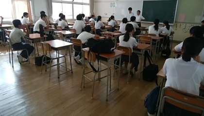 教室で、体育委員に説明してもらい、男女に分かれて決めています。