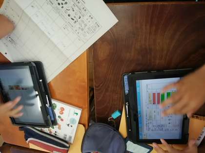 タブレットや教科書、プリントを使いながら班で協力出来ており、次回の発表が楽しみです。