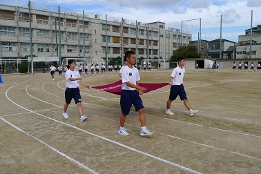 本番のような雰囲気で、緊張感のある行進。各種目も全力で走り、本番への意気込みを感じさせる姿でした。給食を食べて午後はダンスの練習です。さあ、本番まであと2日、頑張る姿を多くの方に見ていただきたいです!