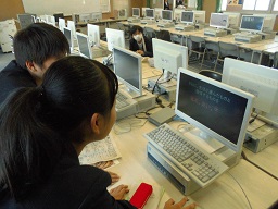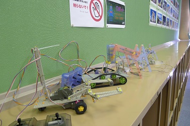 パソコン教室に入ると、パソコン部の作品が展示してありました。個々に作成した、脱出ゲームがパソコン上に表示されており、鬼から逃げるゲームが人気でした。心理テストもあり、盛り上がっていました。その他にも、ロボット作品や、画像作品もありました。