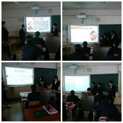 食に関する問題や地域の食材について各班で調べ学習をし発表しました。