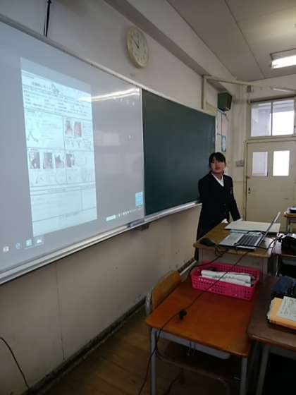 1年生の家庭科の授業で冬休みの宿題の発表を行いました。