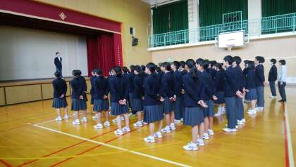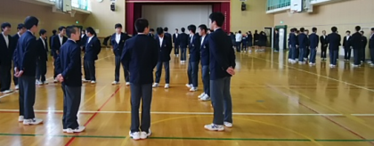 1年生の時に宿泊オリエンテーションで学んだことを思い出すために挨拶の練習や校歌斉唱をしました。