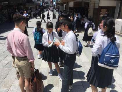 英語科からのミッションは、外国人にインタビューです。事前に考えてきた質問を英語を使って聞くというものです。