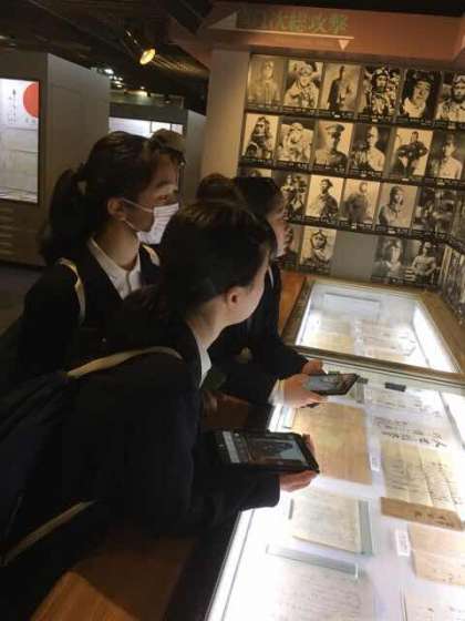 館内では、一人一台配付されたタブレット端末を持って観覧しました。イヤホンからは音声案内があります。