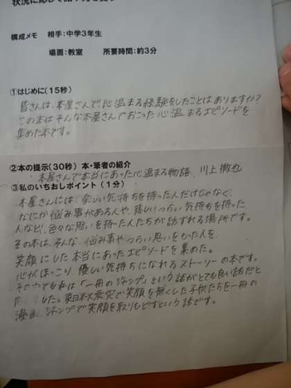 全員がその本を買うのでは?というぐらい上手に話してくれた生徒もいたようでした。