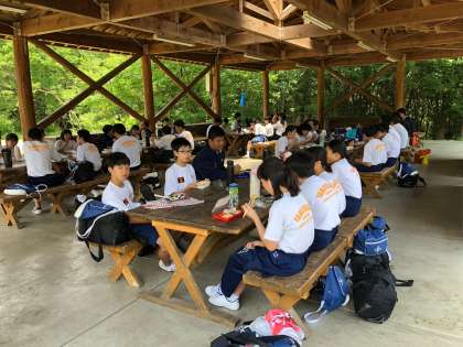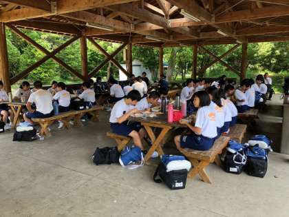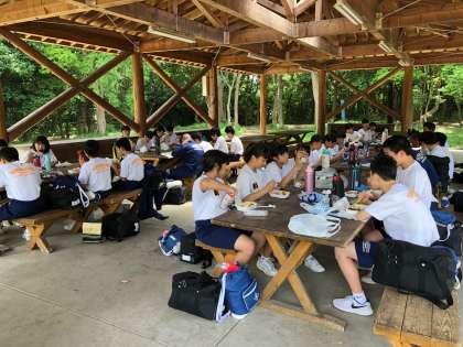 大縄跳び練習も終え、お腹が空いてきた時間になりました。各クラス持ってきたお弁当をいただきます!!