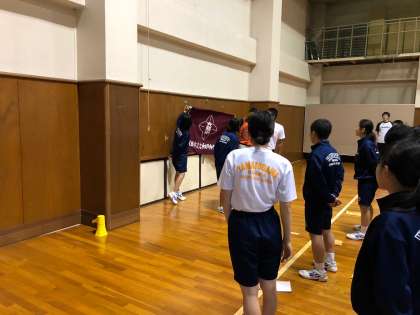 退所式がありました。校旗降納し、生徒代表の挨拶がありました。お世話になった信太山少年野外活動センターに感謝し、次の野外炊事に向かいましょう。