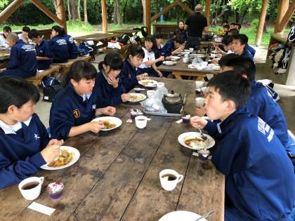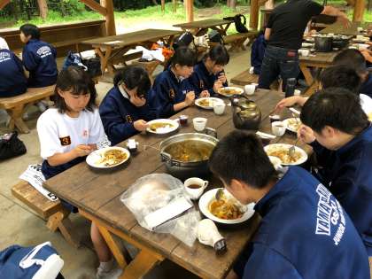 カレーが完成し、美味しく頂きました。どの班も大成功です。