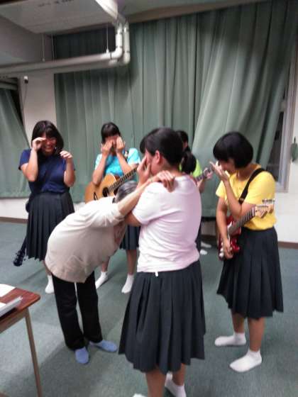 音楽室にて、文化発表会のリハーサルを行いました。これまでご指導してくださった柴田ご夫妻から、たくさんのアドバイスを頂きました。ギター部は、明日の本番が最後の活動となるので、本日が最後のレッスンでした。今までのレッスンでも、柴田ご夫妻から「仲間と音楽でつながる素晴らしさ」、「何事も続けることの大切さ」など、ギターの奏法に限らず、たくさんのことを教えていただきました。部員たちも、今日まで個々それぞれの想いが募り、最後の挨拶で涙があふれてきました。柴田先生、本当に今まで10か月間、ありがとうございました。明日は今までの練習を発揮し、全力で楽しく明るく演奏します!
