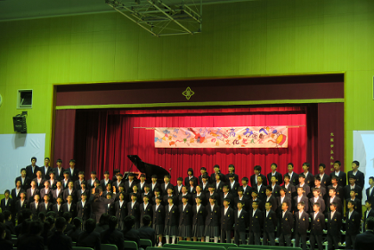 文化発表会【舞台発表】がありました。どれも素晴らしい発表ばかりでした。特に、3年学年劇「いざ散らん〜身近な平和を願って〜」は、とても感動的で、心に残る演劇でした。写真は上から、「吹奏楽部演奏」・「1年合唱コンクール」・「2年学年劇、大和祭がなくなる日」です。