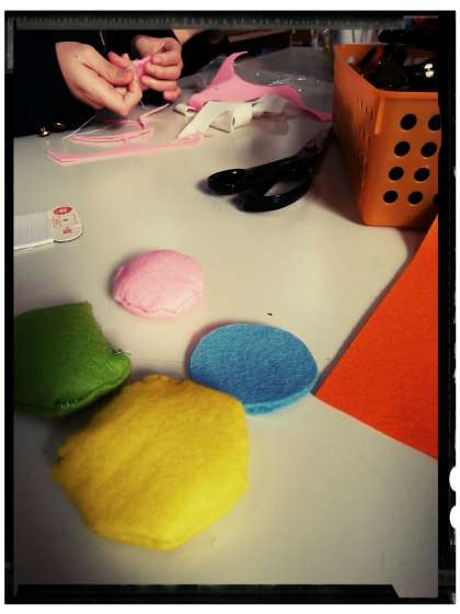 フェルトでマカロン…蛙?ヒヨコ?など楽しくお喋りしつつ、個性的な作品を楽しそうに作っていました。