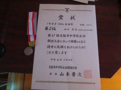 3年女子 100M平泳ぎ 5位 鵜塚さん