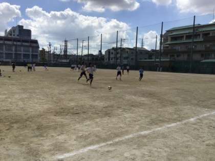 サッカー部が午前中、大和川中学校・住之江中学校・松虫中学校の3校で合同練習を行いました。