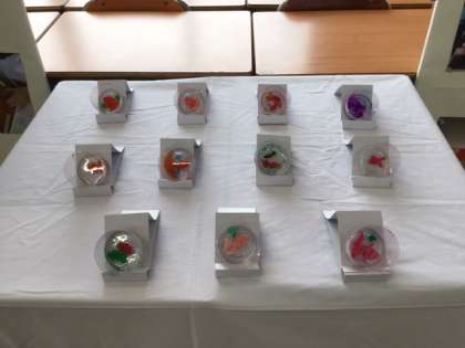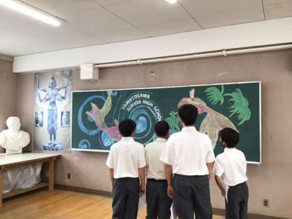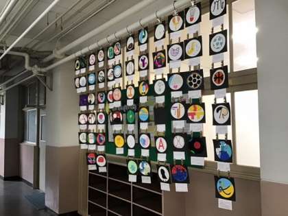 保健室前には、1年生の美術作品「私を表すロゴマーク」