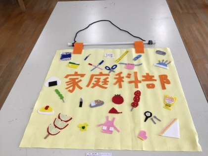 幼児の手作りおやつレポートや家庭科部の作品が展示されています。