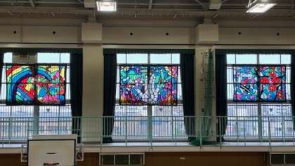 3年生のステンドグラス。体育館に展示されています。