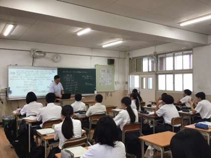 1年2組は、数学で「速さ」について。応用問題の解説に頭を抱えながら理解しようと一生懸命です。
