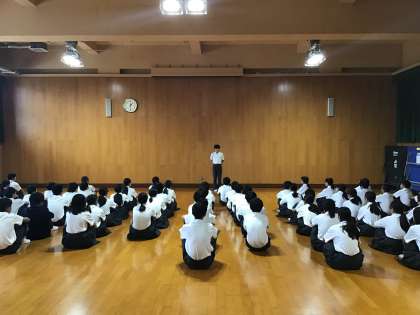 本日午後に前期就業式を行い、その後各学年において集会を行いました。