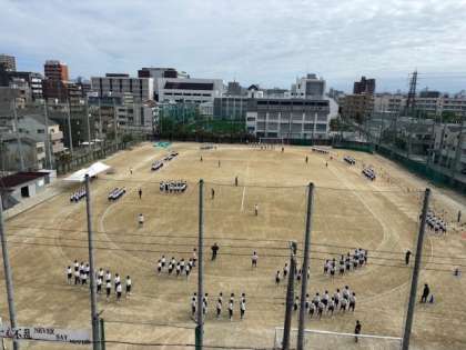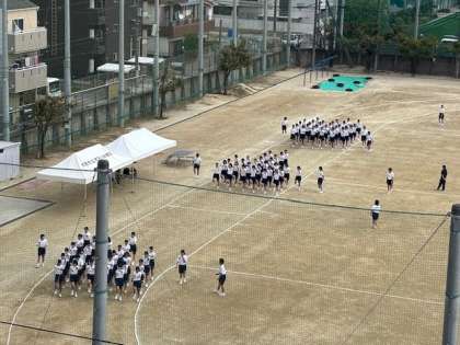 今日の3・4限の全体練習のために、生徒会と体育委員が朝早くからグラウンド準備をしてくれました。