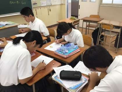 今日の2年生の英語の授業は、学び合い学習に取組んでいます。