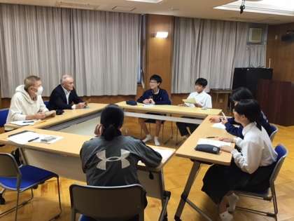 昨日の放課後、現生徒会の3年生が地域活動協議会の会長および防災リーダーの方と、11月8日(土)に予定されている「住吉区 総合防災訓練」の打ち合わせをしました。