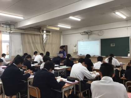 2組は、英語の授業。一つ一つの単語も丁寧にネイティブな発言ができるように発声していました。