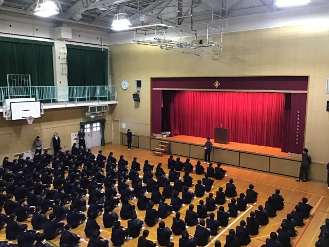 はじめに、校長先生から新年のあいさつのあと2026年の干支は「丙午」。「丙」は火の陽の性質、「午」も火の性質を持つため、非常にエネルギッシュでパワフルなエネルギーを持つとされるので、情熱的・行動的な意味合いから今年は「活気ある年」「経済が好転する年」とされています。このような年にみなさんにはいろいろなことに挑戦してほしいと思います。今までを振り返り目標に向かって頑張ってほしい。目標をつかむため、自分の力を良い形で使い、毎日頑張っていることや成長できていることに自信をもってあきらめず自分のため、自分を輝かせるためにこの1年がんばりましょうという話がありました。