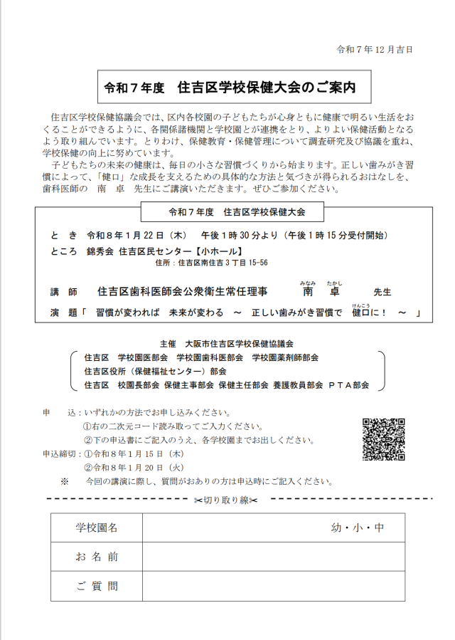 令和8年1月22日(木)午後1時30分より住吉区民センターにて