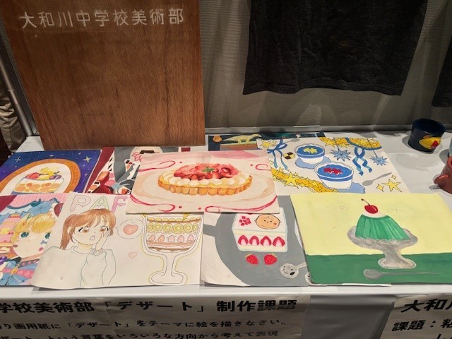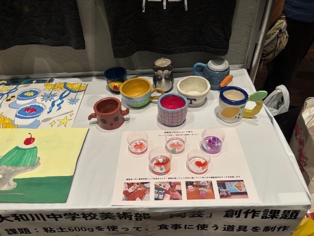 美術部のみんなが思いを込めて作った作品や描いたポスターを来客された地域の方々が「素敵♪」と称賛されていました。