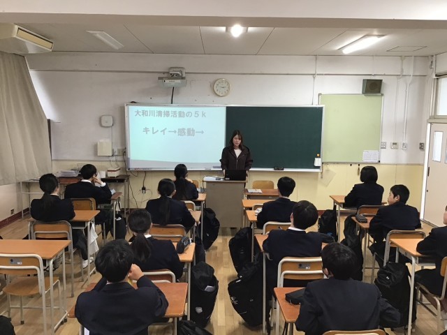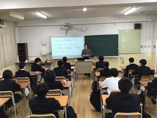 大和川中学校では、「なぜ毎日全員で黙働清掃を行うのか」など改めて清掃の大切さを再認識しました。