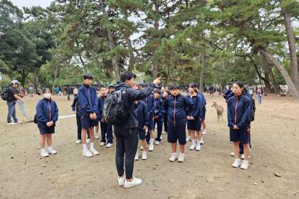 予定通りに奈良に到着しました。各クラス集合写真を撮影後、各班での活動を始めました。