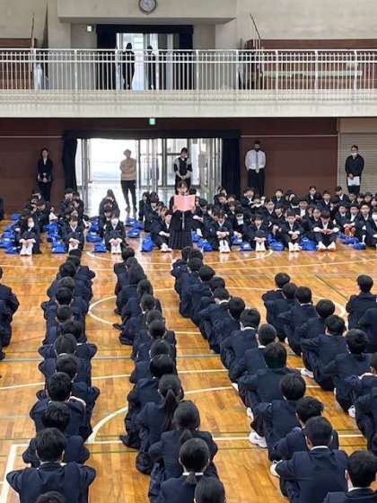 始業式の後、新1年生を迎えて、生徒会主体の歓迎を行いました。