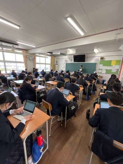 全国学力学習状況調査 理科 公開日 2025/04/14 更新日 2025/04/14 お知らせ 本日は3年生で全国学力学習状況調査 理科の生徒質問と操作練習そして学習状況調査が1人一台端末を使用して、行われています。 いいね(0)