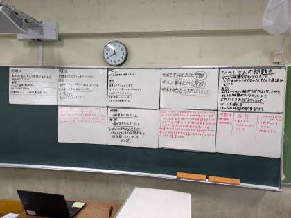 ネットゲームに夢中になっていく動画を視聴し、問題点、原因、改善点を考え、班ごとに発表しました。