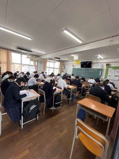 中間テスト 公開日 2025/05/15 更新日 2025/05/15 お知らせ 本日より2日間、1学期の中間テストを実施しています。 3年生は理科、国語、音楽の3時間で自身の進路に向けて、強い気持ちで望んでいます。 いいね(0)