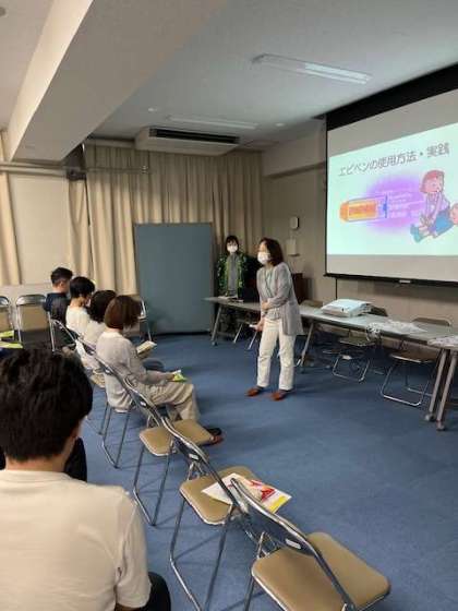 役割を決めて、シミュレーション研修を真剣に行っています。