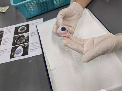 豚の肺の観察と豚の眼球の解剖を行いました。