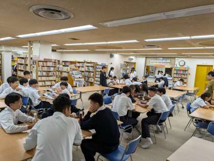 雨の日が続いており、運動場が使用できない分、図書館の利用率が増えています。